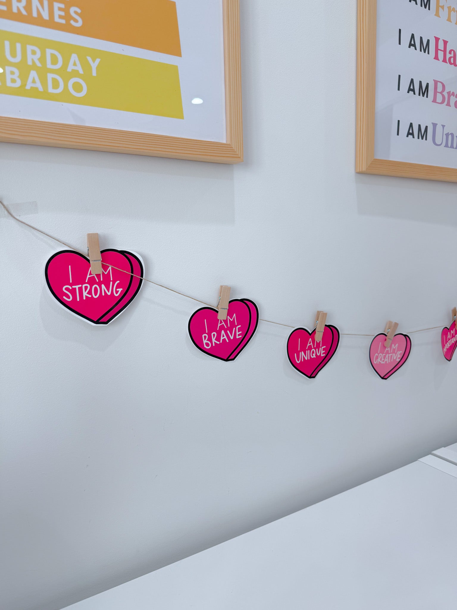 Each banner features adorable hand-drawn affirmations in a Valentine's theme—includes 8 uplifting affirmations that build confidence and emotional intelligence. Messages like "I am loved," "I am unique," "I am special," help young children develop positive self-talk and a growth mindset in the most delightful way.